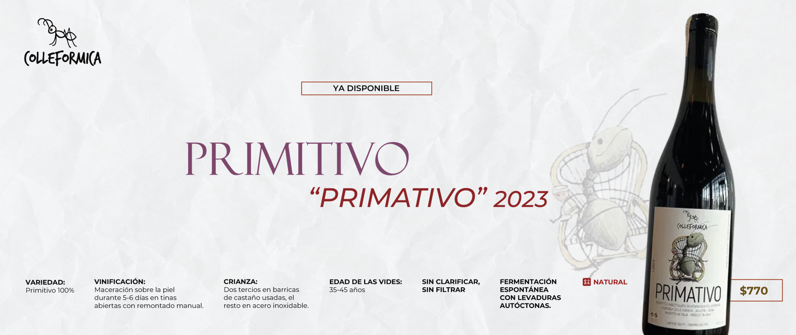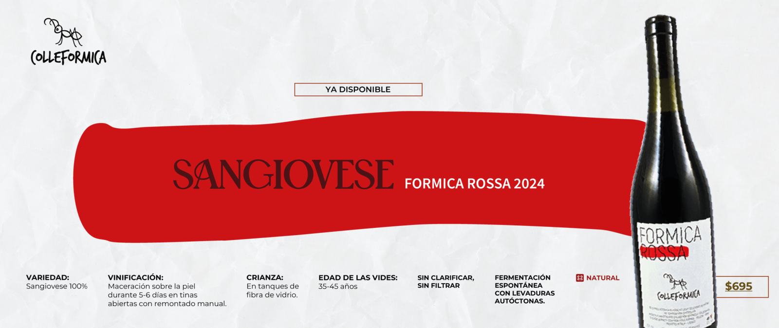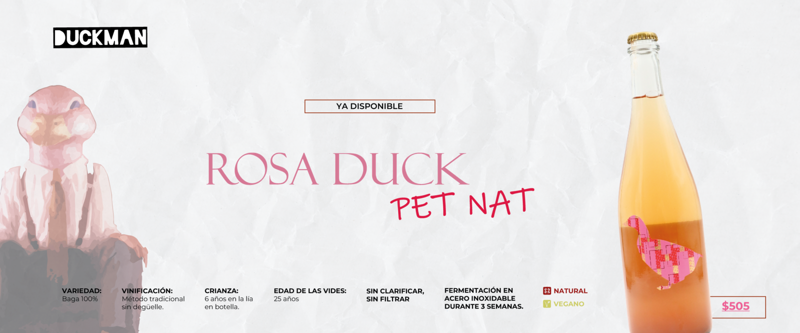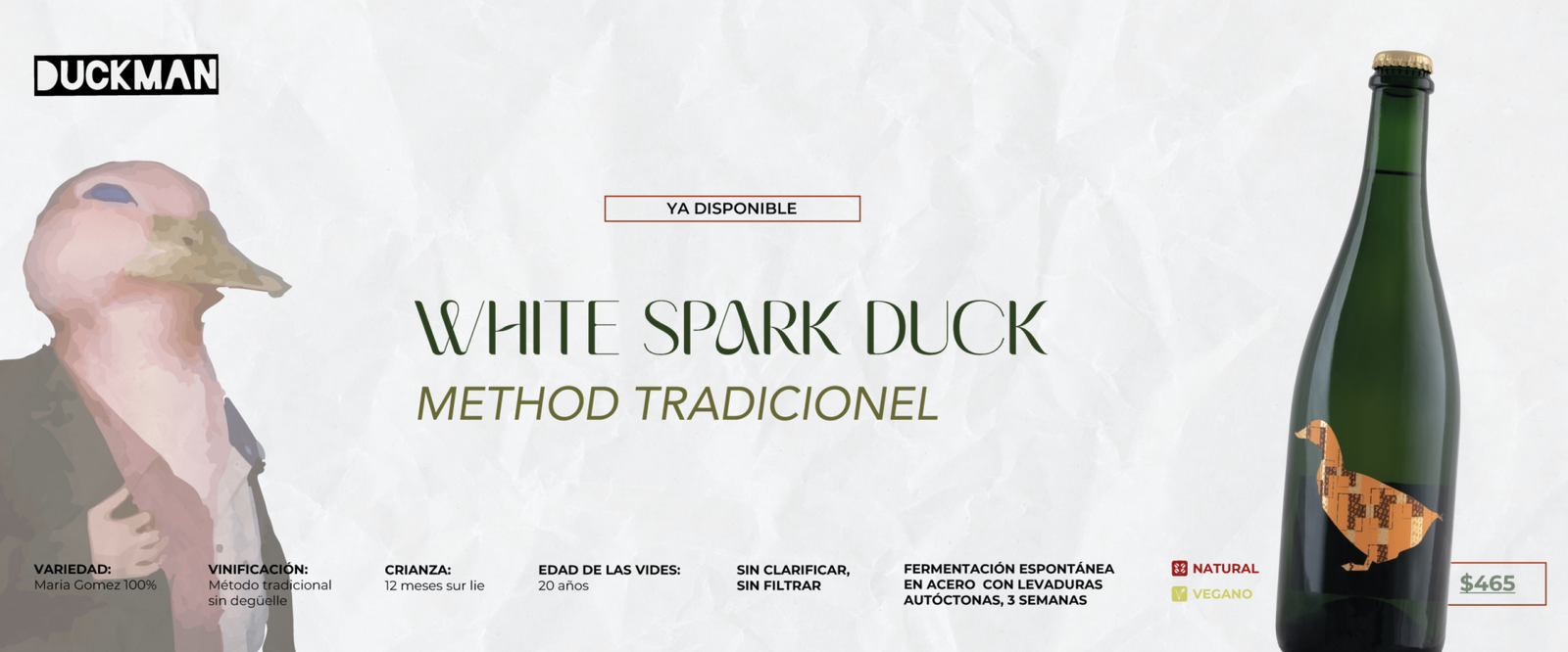 Vino espumoso natural y de elaboración ancestral, caracterizado por su frescura, espontaneidad y estilo poco intervenido. Se produce embotellando el vino antes de que termine la primera fermentación, lo que permite que el gas carbónico se genere de forma natural dentro de la botella, sin añadir azúcares ni levaduras externas.