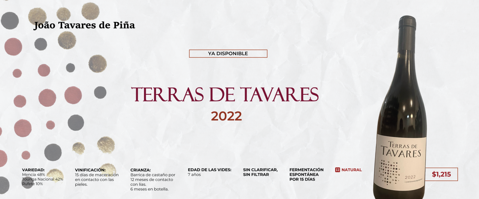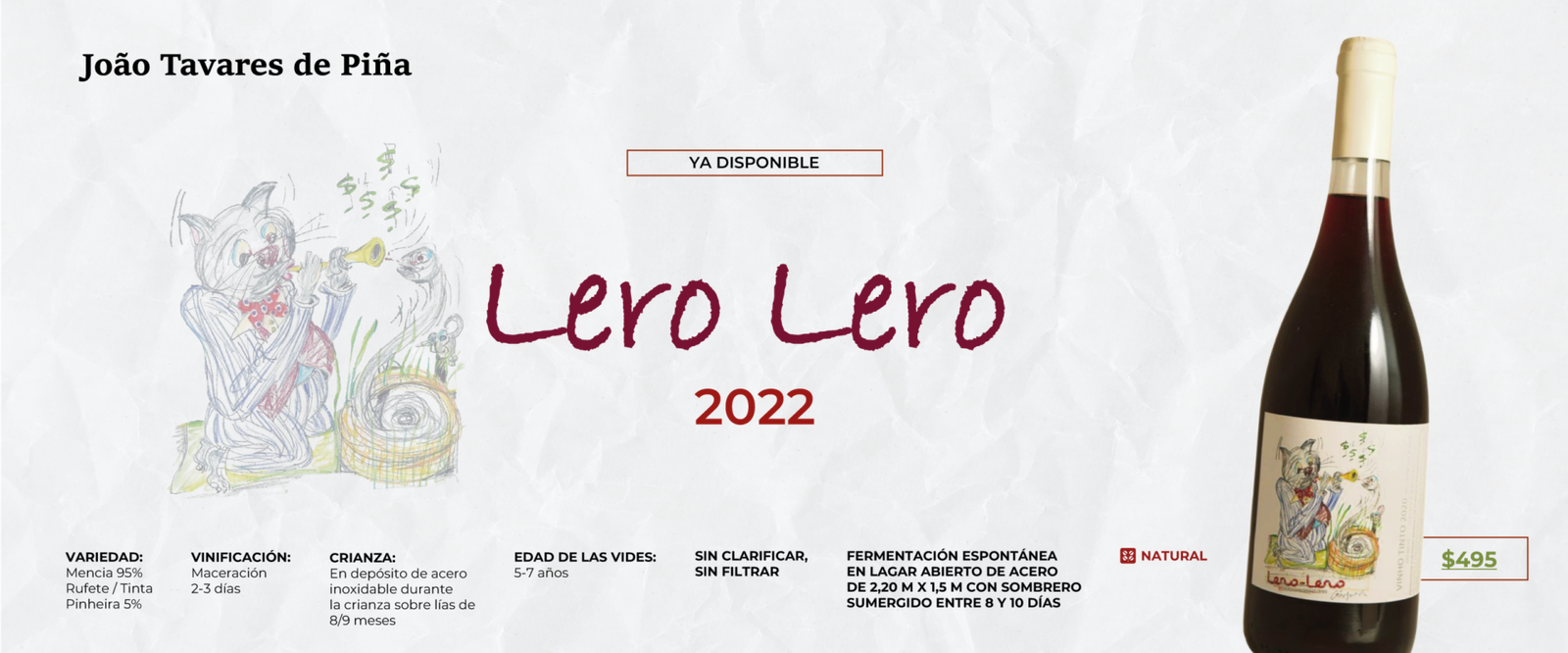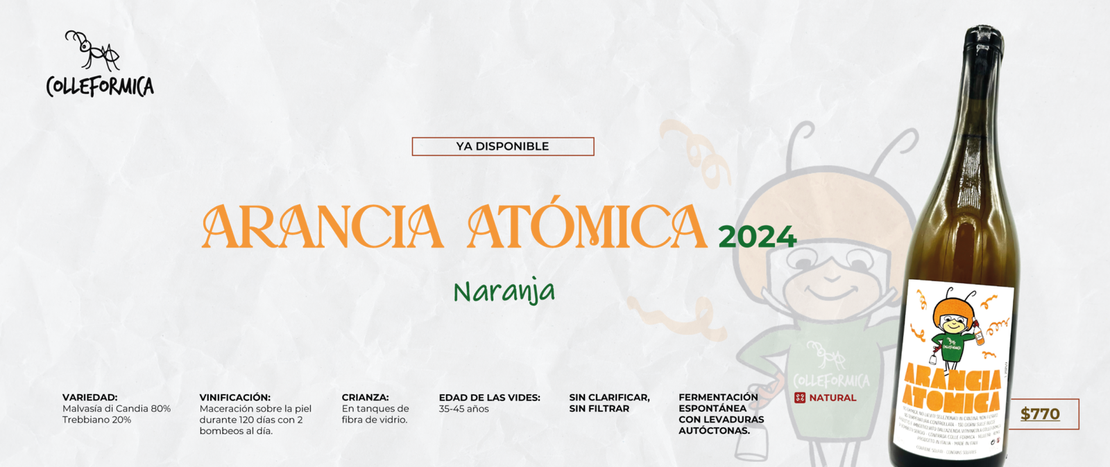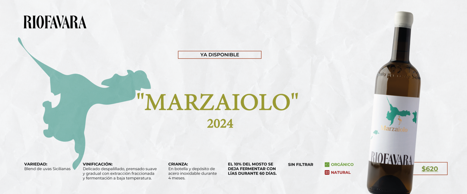 Vino espumoso natural y de elaboración ancestral, caracterizado por su frescura, espontaneidad y estilo poco intervenido. Se produce embotellando el vino antes de que termine la primera fermentación, lo que permite que el gas carbónico se genere de forma natural dentro de la botella, sin añadir azúcares ni levaduras externas.