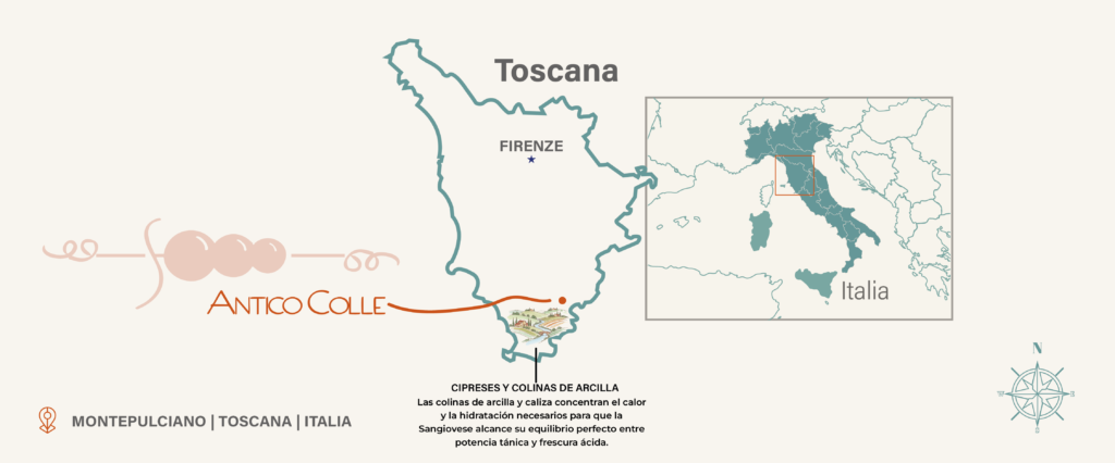 Antico Colle es una bodega familiar que busca combinar la tradición vinícola toscana con enfoques modernos y sostenibles. La bodega esta comprometida con la producción de vinos de calidad que reflejen el carácter único de la región y las variedades de uva locales.