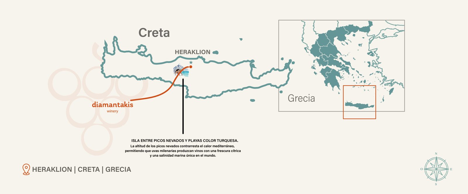Diamantakis Winery es una bodega ubicada en la isla de Creta, Grecia. La bodega lleva el nombre de la familia Diamantakis, que ha estado cultivando uvas y produciendo vino durante generaciones. La filosofía de la bodega se centra en la conexión con la tierra, la tradición y la producción de vinos que reflejen el carácter único del terruño cretense.